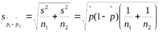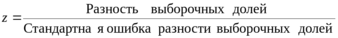 , полученных по выборкам заданного объема, и поскольку дисперсия разности равна сумме дисперсий, стандартная ошибка разности долей равна