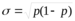 Найденное стандартное отклонение σ полностью определяется величиной р. Этим оно принципиально отличается от стандартного отклонения для нормального распределения, которое не зависит от μ.