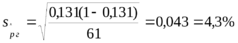 - стандартная ошибка доли, σ – стандартное отклонение, n – объем выборки. Так как