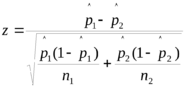 Если при оценке дисперсии объединить наблюдения из обеих выборок, чувствительность критерия Стьюдента увеличится. Таким же способом можно повысить чувствительность критерия z. Действительно, если справедлива нулевая гипотеза, то обе выборочные доли