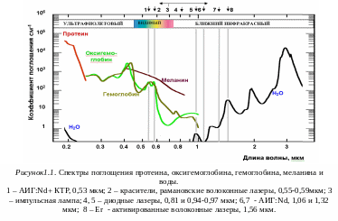 Это имеет принципиальное значение с точки зрения выбора длины волны излучения для хирургических и терапевтических воздействий.