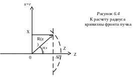 Вблизи оси можно рассматривать волновой фронт как сферический. Найдем радиус кривизны фронта, считая задачу осесимметричной (рисунок 6.4):