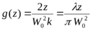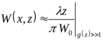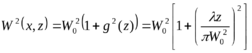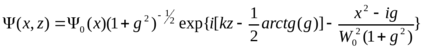 Как видно, введенный волновой параметр g(z) характеризует «расплывание» волнового пакета по мере его распространения. Если g>>1, то наблюдается рост W(x,z) по закону, близкому к линейному, т.е. зависимость W(x,z) имеет асимптоту, наклоненную под углом