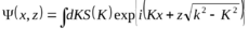 Хотя формула (6.41) представляется несколько тяжеловесной, все ее члены имеют ясный физический смысл. Именно, множитель при экспоненте характеризует изменение амплитуды вдоль оси z. В показателе экспоненты выделяется мнимый член, где