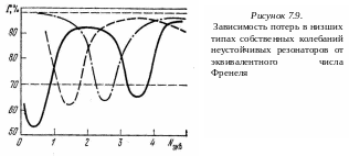 а рисунке 7.9 приведена зависимость потерь Г от эквивалентного числа Френеля Nэкв для трех первых низших типов колебаний.