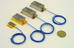 С практической точки зрения системы с пространственным суммированием излучения требуют более сложной юстировки и больше подвержены влиянию пыли, влаги и механических воздействий В частности, НТО «ИРЭ-Полюс» серийно производит мощные высокоэффективные 970-нм лазерные диоды модули PLD (Pig-tailed Laser Diode — лазерный диод с волоконным выходом) с шириной излучающей области 100 мкм. Излучение лазерного диода с помощью микрообъектива вводится в 110 мкм кварц-кварцевое многомодовое волокно. Все элементы смонтированы в компактном герметичном корпусе (рис. 9.7.).