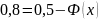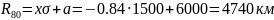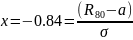 Поскольку P(R80) = 0,8 , то используя данные таблиц “Центрированная и нормированная функция Ф(х)” по заданной вероятности находим значение квантиля нормированно нормального распределения – х.