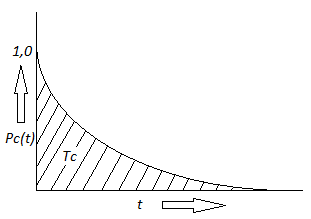 В случае экспоненциального закона возникновения отказов значение средней наработки на отказ может быть получено интегрированием функции надежности P(t) по всей площади, т.е.