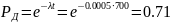 Этого параметра достаточно при экспоненциальном характере распределения наработки на отказ, для вычисления вероятности безотказной работы системы в процессе t=700 циклов пуска двигателя (для пуска двигателя достаточно срабатывания по крайней мере одного датчика).
