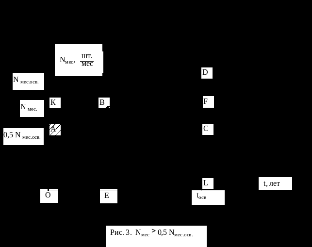 Среднемесячный выпуск установившегося производства (проектный выпуск) Nмес.осв=60 изд/мес.;
