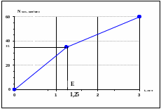 Из графика (рис. 4) определяем значения N мес, необходимых для расчёта среднемесячного выпуска в каждый год периода освоения. В итоге устанавливаем порядковые номера изделий по каждому из этих лет.
