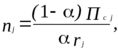 Минимально-расчетная величина партии запуска изделия j-го наименования (nj) определяется по формуле: