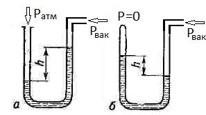 Рис. 6. Жидкостный U-обраэный вакуумметр с открытым (а) и закрытым (б) коленом.