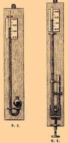 Преодолеть этот барьер позволило изобретение Мак-Леода в 1874 году[9]. Замечательная идея этого вакуумметра (рис. 7) состоит в том, что используя принципы, заложенные в открытом и закрытом U-образном вакуумметрах, можно увеличить степень сжатия газа, согласно закону Бойля-Мариотта [10]: