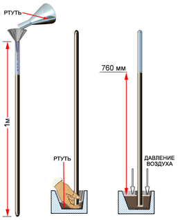 Повторив опыты Галилея со ртутью (рис. 3), которая в 13,6 раз тяжелее воды, он определил, что «сила боязни пустоты» соответствует 760 мм.рт.ст.