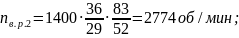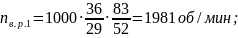 Зная передаточные отношения зубчатых зацеплений, можно найти скорости вращения роликов.