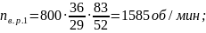 Зная передаточные отношения зубчатых зацеплений, можно найти скорости вращения роликов.