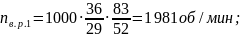 Зная передаточные отношения зубчатых зацеплений, можно найти скорости вращения роликов.