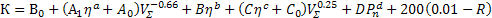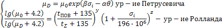Данная зависимость носит расчетно-экспериментальный характер. Эмпирические коэффициенты сведены в следующую таблицу: