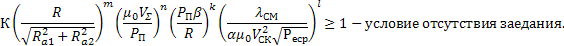 Так как заедание происходит при нестабильных термодинамических процессах, то толщину масляной пленки для неизотермического режима представив в виде безразмерного комплекса, можно получить критерий заедания в следующем виде: