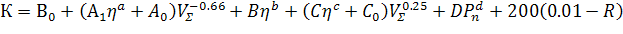 Данная зависимость носит расчетно-экспериментальный характер. Эмпирические коэффициенты сведены в следующую таблицу: