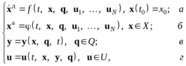 Выражения (1.11) характеризуют динамические связи (а), алгебраические связи (б), вектор выхода (в) и функцию принятия решения и управления (г). Управление