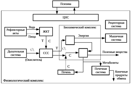 Рис. 1.8б. Компартментальная модель технологической системы организма:
