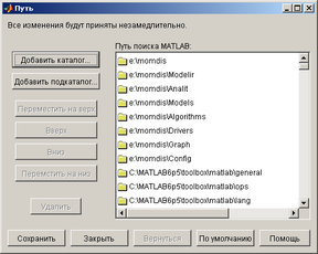 Для установки необходимо скопировать все имеющиеся файлы системы с дистрибутива в каталог. После запуска среды MatLab необходимо добавить в маршруты поиска функций путь каталога, куда установлен «МОМДИС», см. рис. 3.2.
