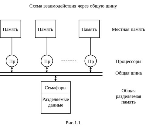 Общая схема организации взаимодействия через общую память приведена на рис. 1.1.