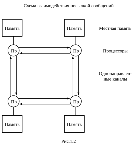 Распределенная вычислительная сеть со способом взаимодействия между процессорами посылкой сообщений в различных модификациях является основным средством рассматриваемых видов параллельной обработки.