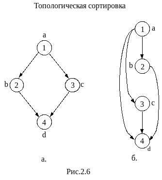 а рис.2.6 приведен ациклический граф и соответствующий линейный порядок.