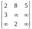 В тех случаях, когда желательно вычислить транзитивное замыкание отношения R, полагают cij = 0, если aiRaj, и cij = в противном случае. Тогда матрица M+ транзитивного замыкания будет состоять только из значений равных 0 или ; причем 0 будет соответствовать наличию пути между вершинами, а – его отсутствию.