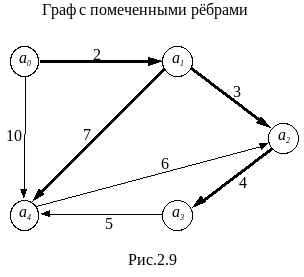 Алгоритм позволяет также найти остовную конструкцию, по которой определяются составляющие дуги кратчайшего пути от a0 к a. На рис.2.9 данная основная конструкция (дерево) выделена жирным.