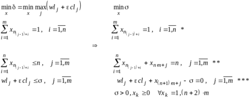 Примем параметр = 0. Тогда вся задача (пере)распределения сводится к задаче смешанного булевого линейного программирования.
