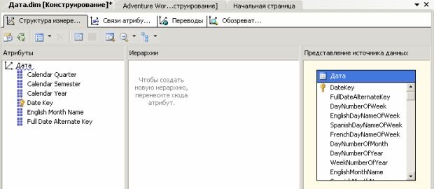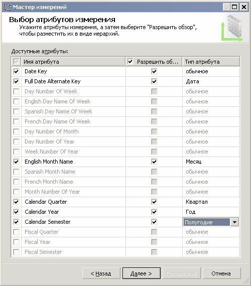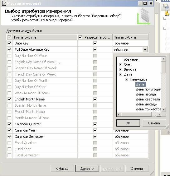 Рис.11. Заданные типы атрибутов для столбцов измерения "Дата"
