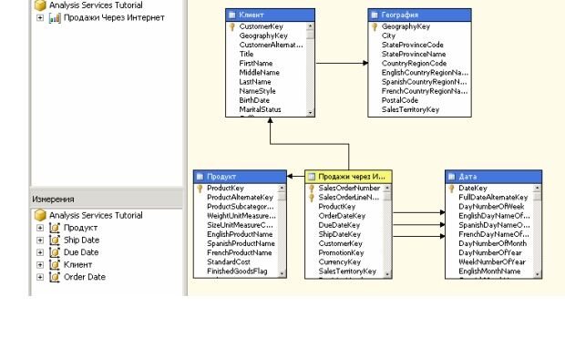 Кроме того, в центре среды разработки в конструкторе кубов будет отображен куб Analysis Services Tutorial (рис.20).