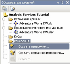 В обозревателе решений щелкните правой кнопкой мыши узел "Измерения" и выберите команду "Создать измерение" (Рис. 5).