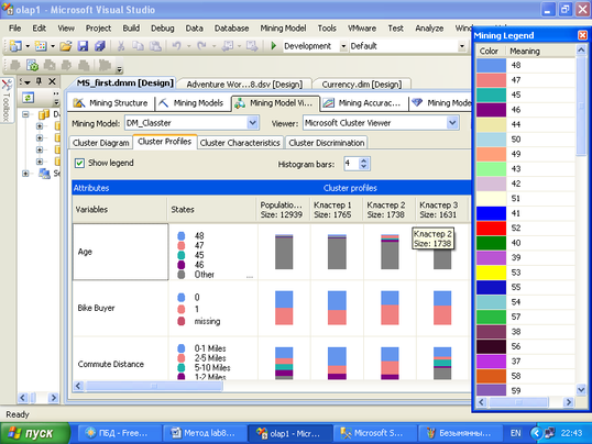 Вкладка Cluster Profiles показывает содержимое кластеров (значения атрибутов объектов, попавших в кластер):