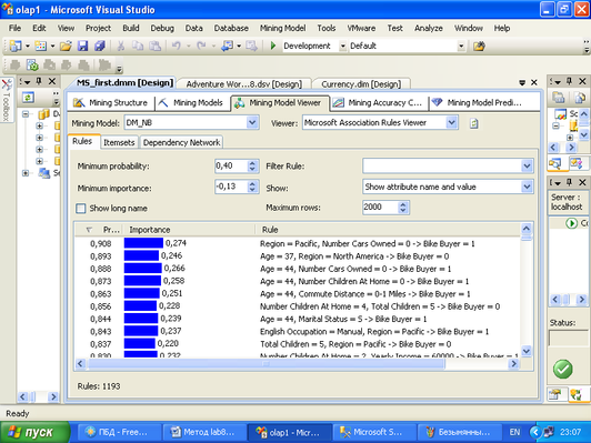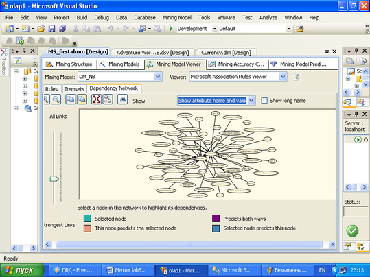 Вкладка Dependency Network показывает правила и их вероятность в графическом виде: