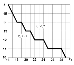 aw – не задано; 10 ≤ z1 ≤ 30; при z1 < 16 z1min определяется по рисунку 1.2 [1]