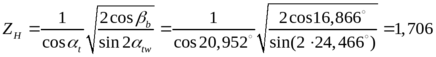 Коэффициент ZH учитывает форму сопряженных поверхностей зубьев и определяется следующей зависимостью