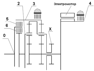 Рассмотрим несколько вариантов схем построения кинематических схем гибридных трансмиссий.