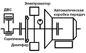 Кроме того, параллельная гибридная трансмиссия вносит дополнительный вклад в стоимость транспортного средства, что может значительно перекрыть прибыль от экономии топлива, полученной в процессе всего жизненного цикла транспортного средства. Простые варианты параллельного построения гибридной трансмиссии используются, главным образом, для систем, в которых мощность, проходящая через электрическую часть трансмиссии, не превышает 15% мощности ДВС [2].