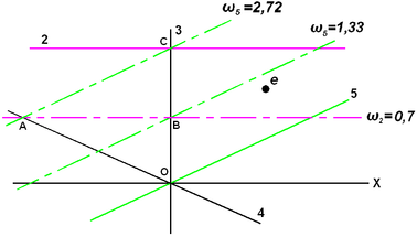 Дополнительные элементы управления позволили организовать совместно с тормозом звена 4 и блокировочной муфтой 8 четыре передачи переднего хода с фиксированными передаточными отношениями. На плане угловых скоростей (рис.21) режимы движения с фиксированными передаточными отношениями отражены рабочими точками D, B, e и С.