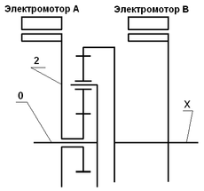 При неподвижном вале ДВС частота вращения электромотора А на основании (1) будет определяться только частотой вращения электромотора В