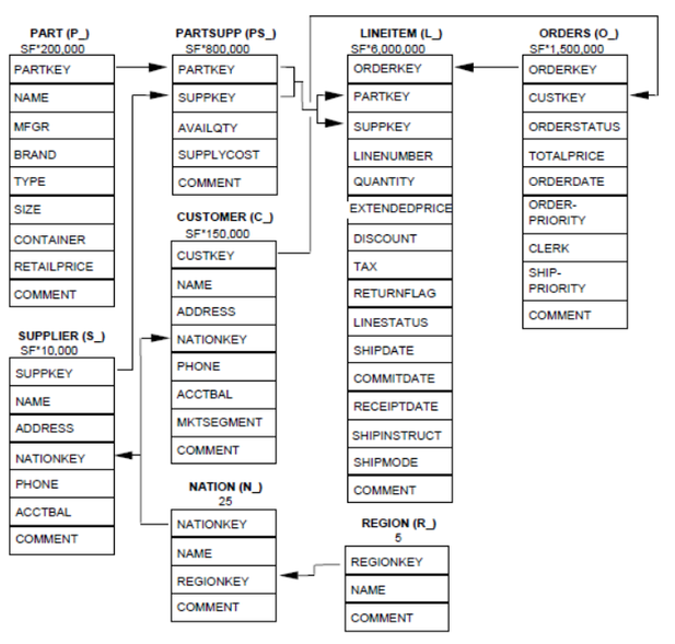 Более подробно схема базы данных и запросы теста TPC-H описаны в прилагаемом файле «tpch2.17.1.pdf».