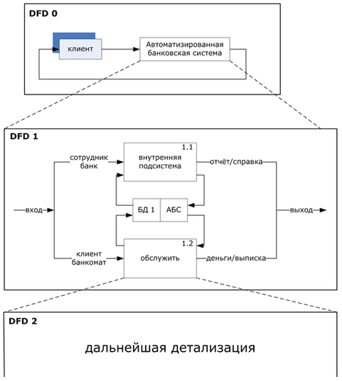 1. Как строятся вложенные диаграммы потоков данных (ДПД)
