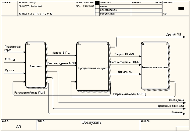 Лабораторная работа 2. Разработка с помощью пакета BPwin диаграмм потоков данных системы, организующей работу банкомата по обслуживанию клиента по его пластиковой карте (4 часа).
