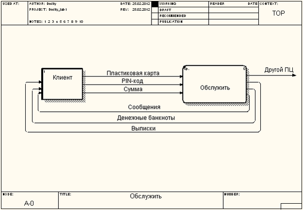 На Рисунок 1.2 приведена контекстная диаграмма процесса обслуживания клиента по его банковской карте.