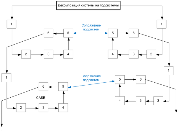 Но в отличие от каскадной, все этапы реализуются с помощью CASE-средств. Использование этих средств позволяет существенно уменьшить время реализации витка подсистемы.